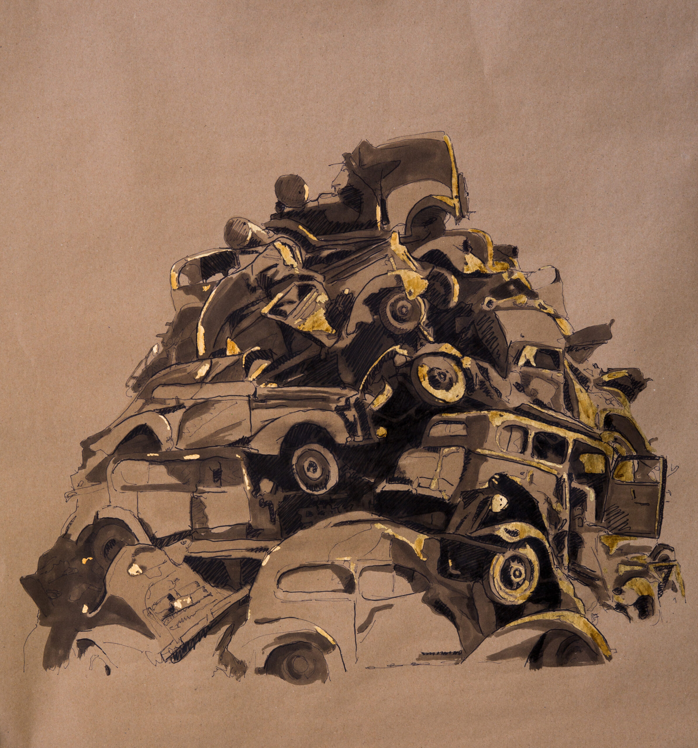ink and gold leaf drawing on kraft paper