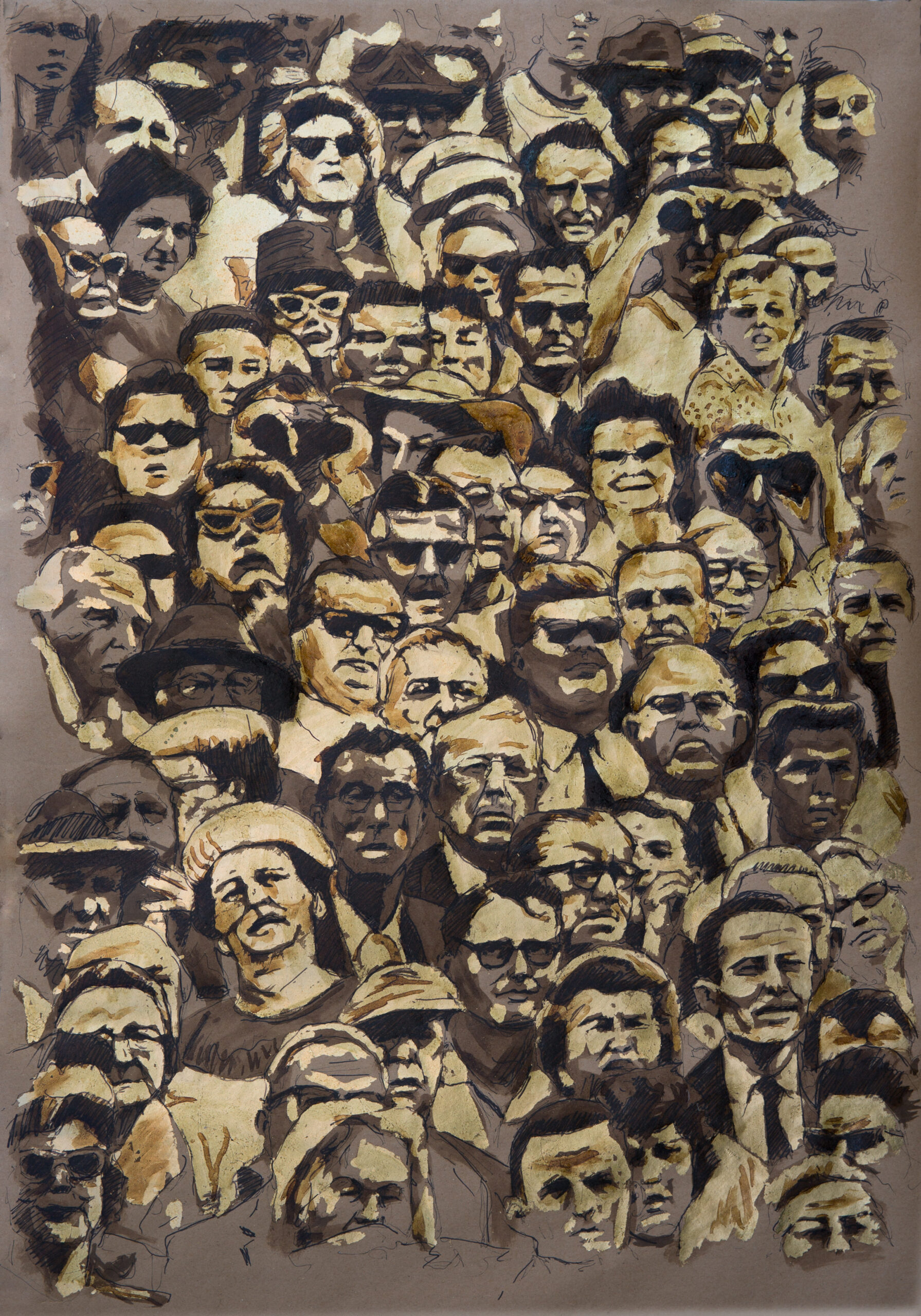 ink and gold leaf drawing on kraft paper